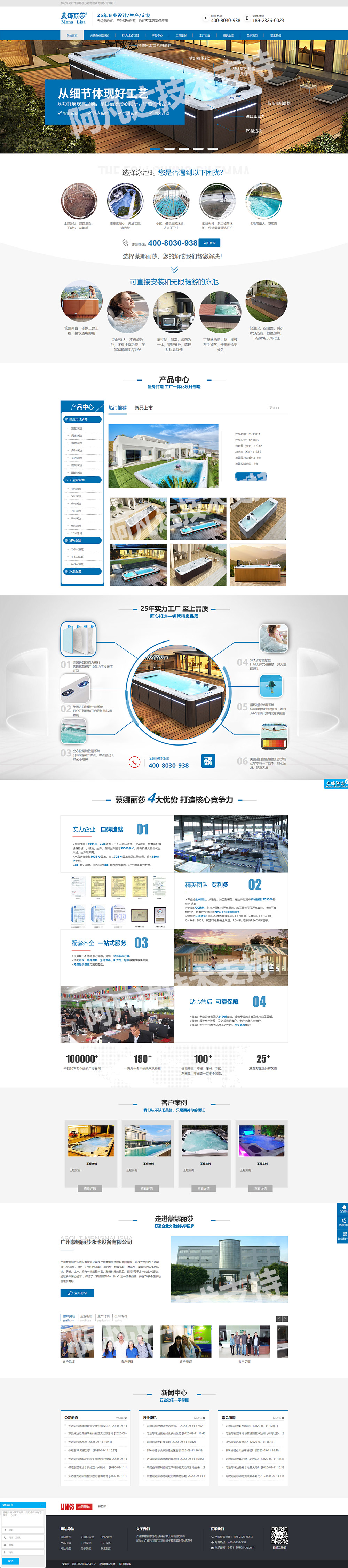 廣州蒙娜麗莎泳池設備有限公司營銷型網站建站案例展示